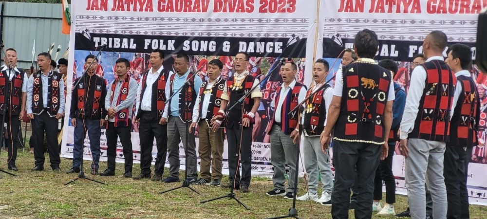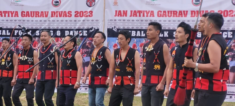 The Morung Express presents glimpse of tribal folk song and dance event as part of Jan Jatiya Gaurav Divas 2023 held on November 21 at The Garden, Kohima. It was organised by Tribal Research Institute, Department or Tribal Affairs, Government of Nagaland and funded by Ministry of Tribal Affairs, Govt of India. (Morung Photo)