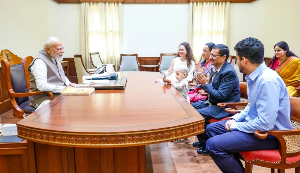 New Delhi: Bharatiya Janata Party (BJP) MP and actress Kangana Ranaut meets Prime Minister Narendra Modi along with her family on her birthday, in New Delhi on Monday, March 23, 2026. (Photo: IANS/Instagram/@kanganaranaut)
