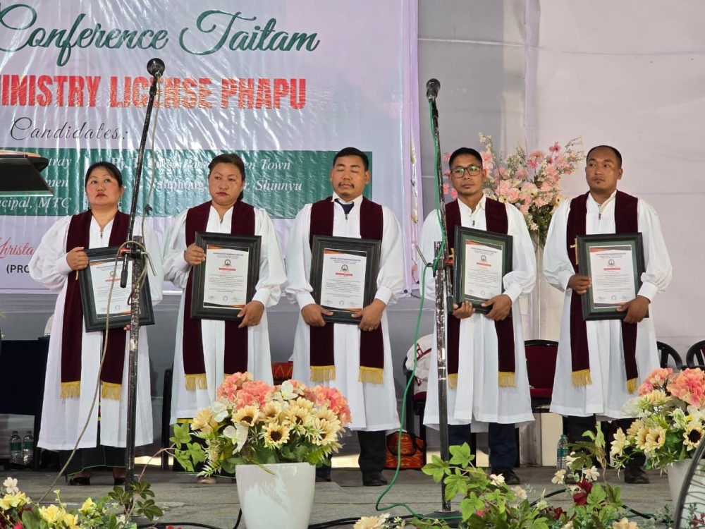 During the Sunday devotional service, ministry licences were conferred upon five candidates — Liya, Manya, Khamba, Nahphong and Pulei.