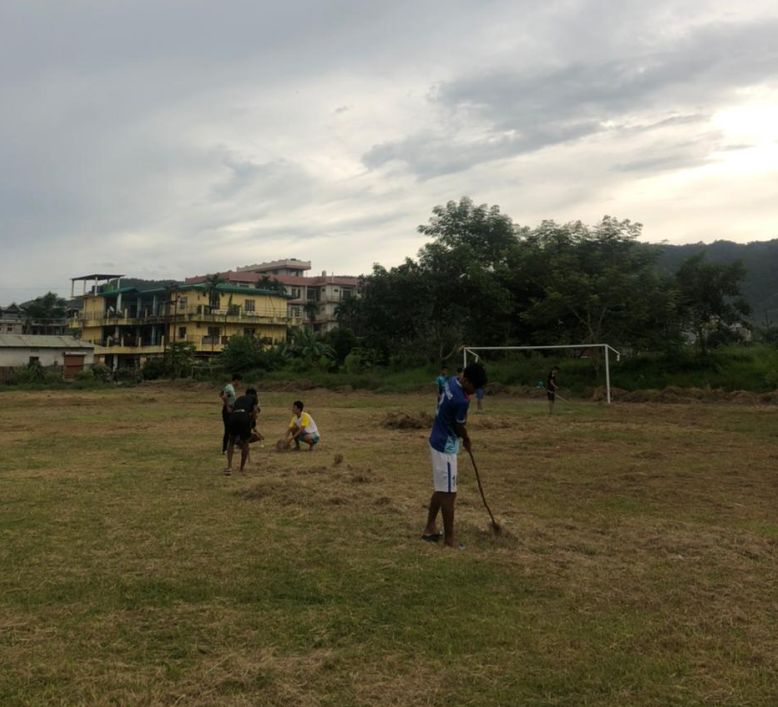 Some players and members of the Chümoukedima FC cleaning the Chümoukedima local ground in preparation for the upcoming Dimapur Division League which is scheduled to begin its second edition in October. (Morung Photo)
