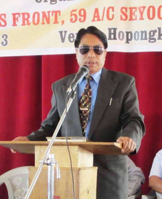 Parliamentary Secretary C. Kipili Sangtam speaking at the felicitation programme in Kiphire on April 26.