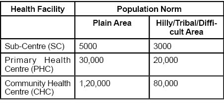 Indian healthcare infrastructure in rural areas is designed as a three tier system on a population norm as follows: