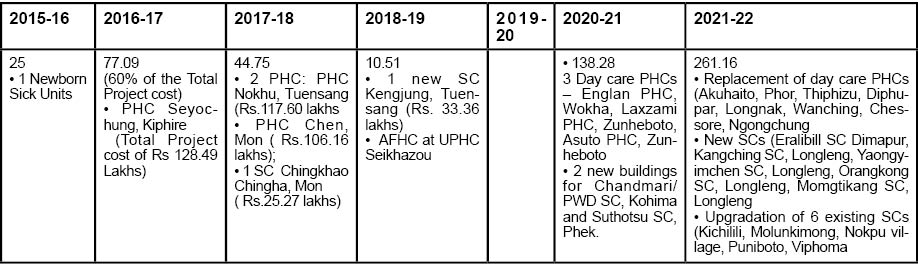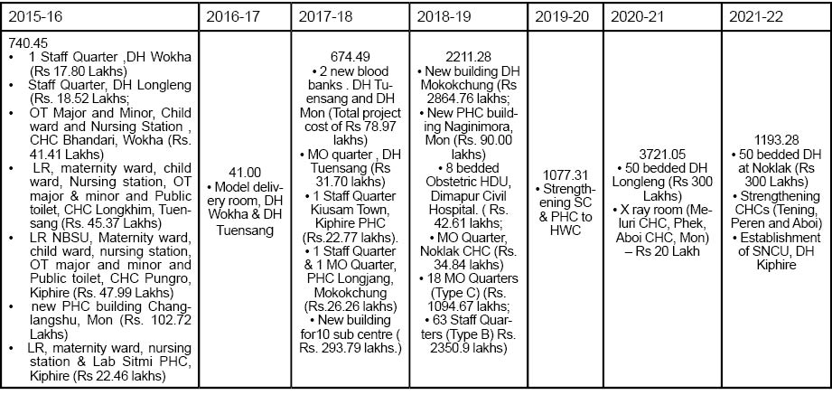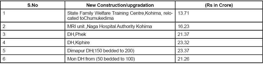 NHM funds only primary & secondary care upto District Hospital (DH) level. As a special dispensation for NE states, 100% funding was provided for strengthening Tertiary / Secondary level health infrastructure. Six projects approved are: