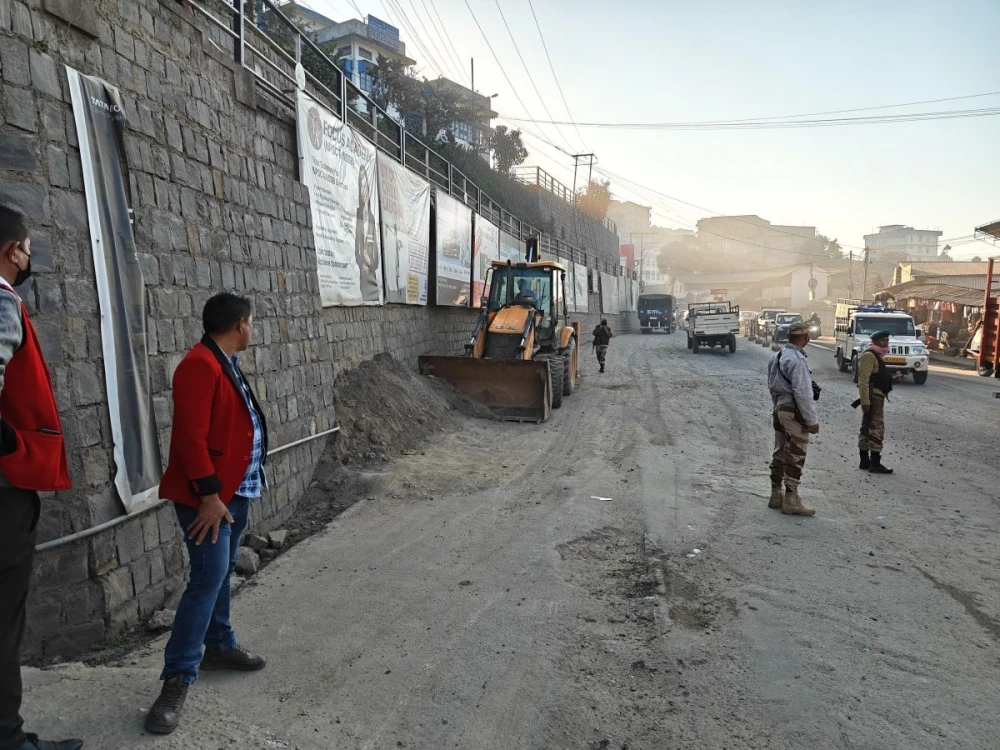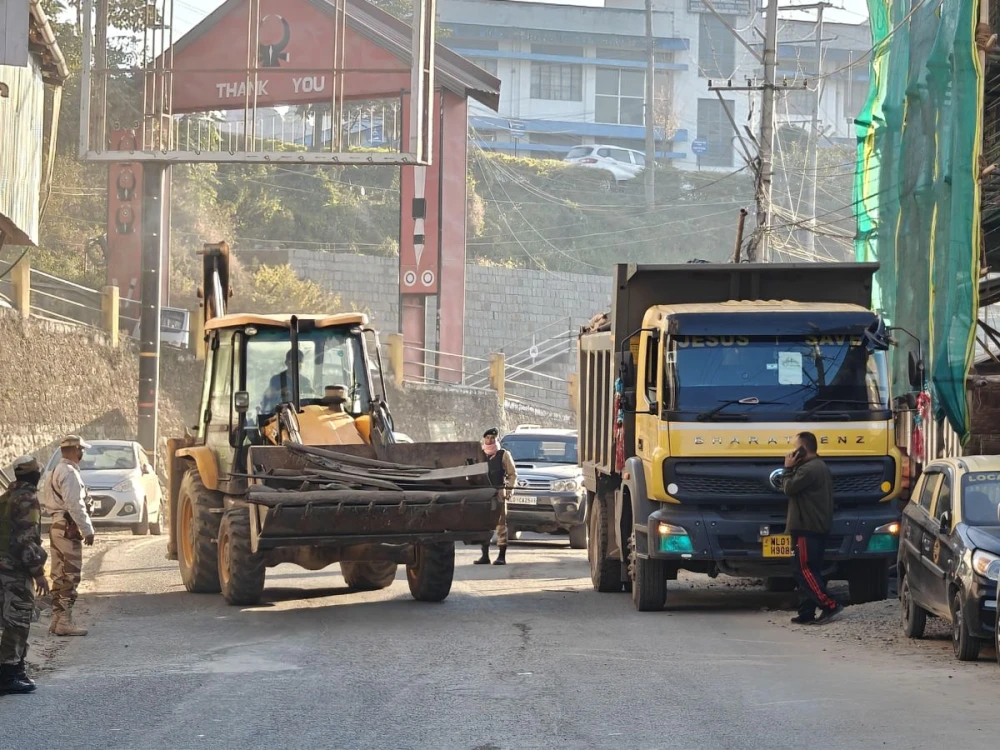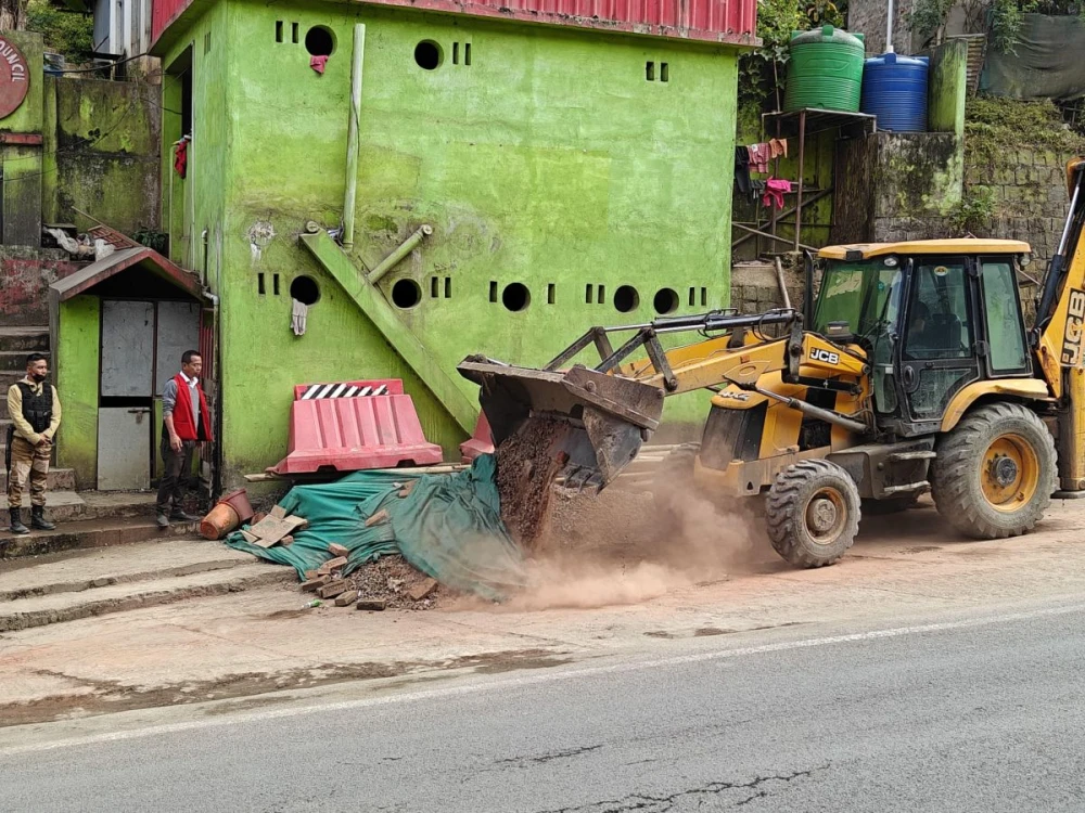Nagaland 29th November 2025 Roadside construction materials obstructing roads and hindering traffic movement were cleared by the Kohima District Administration during an exercise conducted at various locations across Kohima town on November 29. (DIPR Photo)