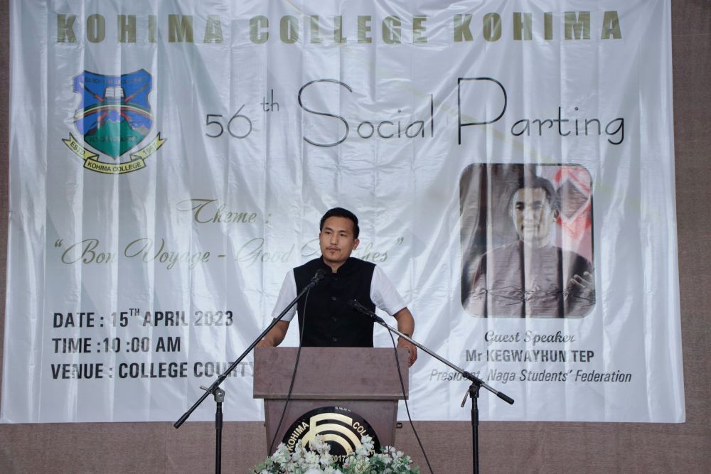 KOHIMA, APRIL 16 (MExN): Kohima College celebrated its 56th Social Parting on April 15 at the college courtyard with Kegwayhun Tep, President, Naga Students’ Federation as the guest speaker.