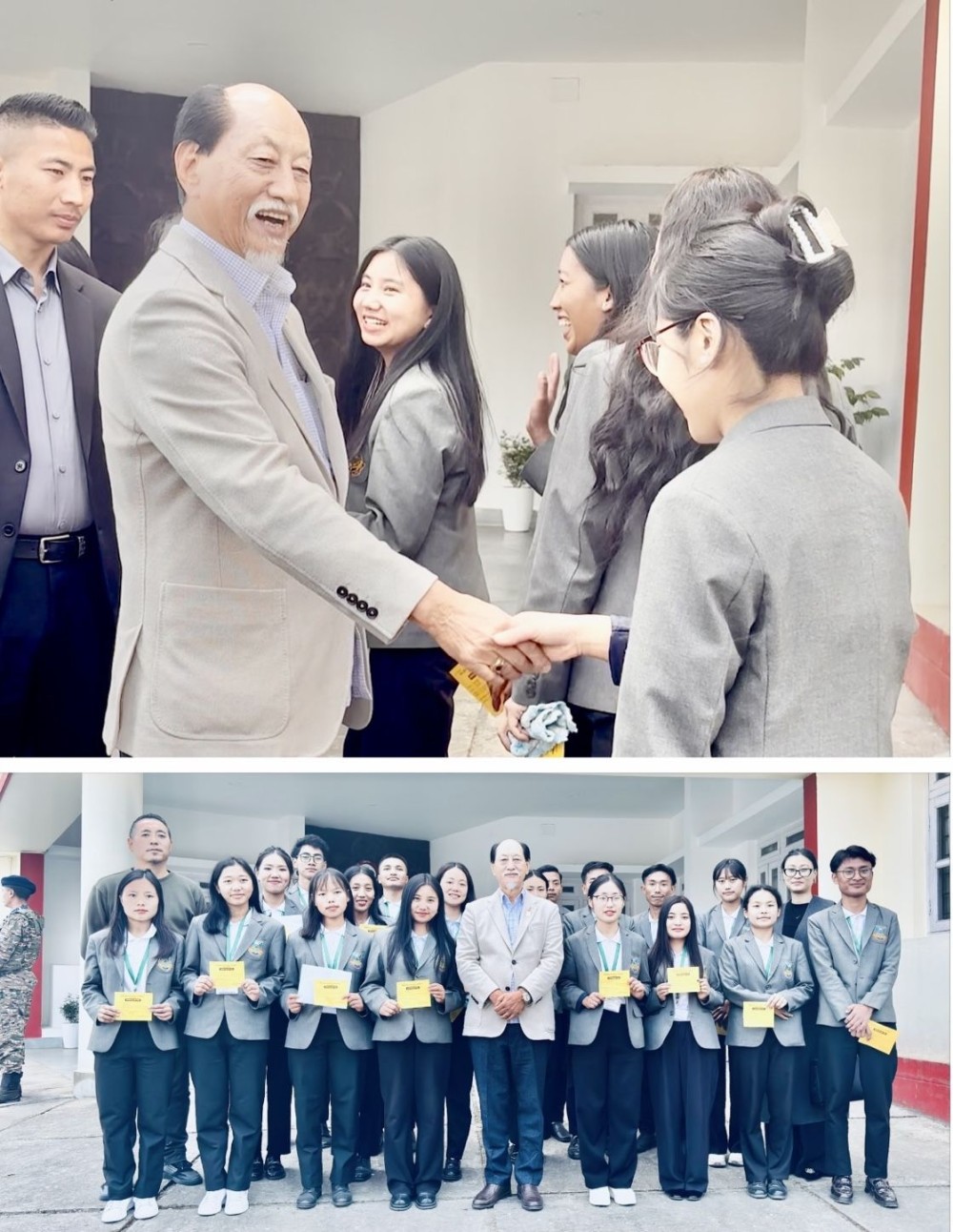 Following the session, the students also had the opportunity to briefly interact with and take a group photograph with Dr Neiphiu Rio, making the visit both educational and memorable for the participants.