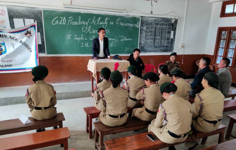 Kohima, February 25 (MExN): The NCC (Senior Wing) of St Joseph’s College (Autonomous), Jakhama from 1 NL Girls’ BN NCC-Kohima under the aegis of NCC Group-Kohima organised G-20 presidency activity on environmental awareness within the college campus on February 24.