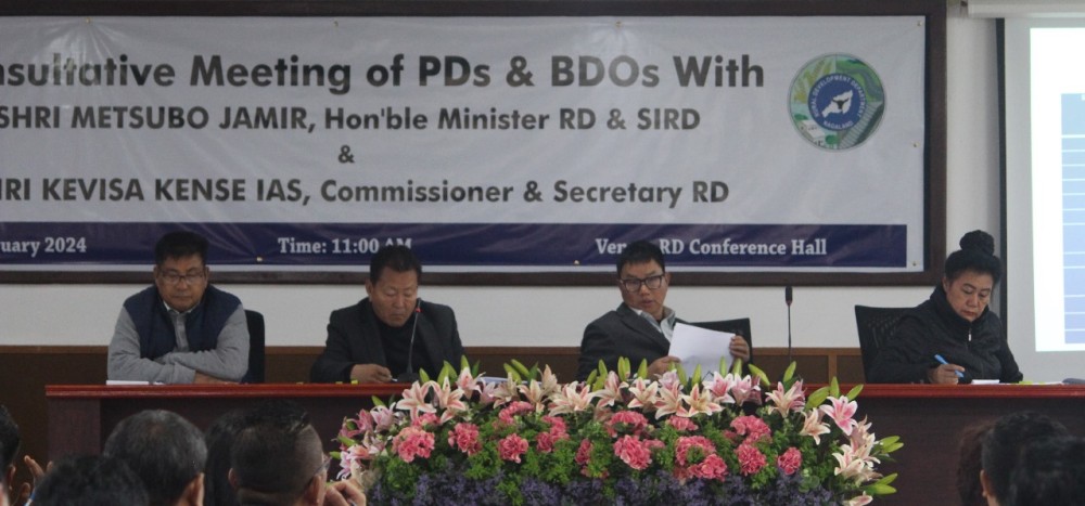 Kohima, February 28 (MExN): The Department of Rural Development today held a consultative meeting of PDs and BDOs with RD Commissioner & Secretary Kevisa Kense at RD Conference Hall, Kohima.