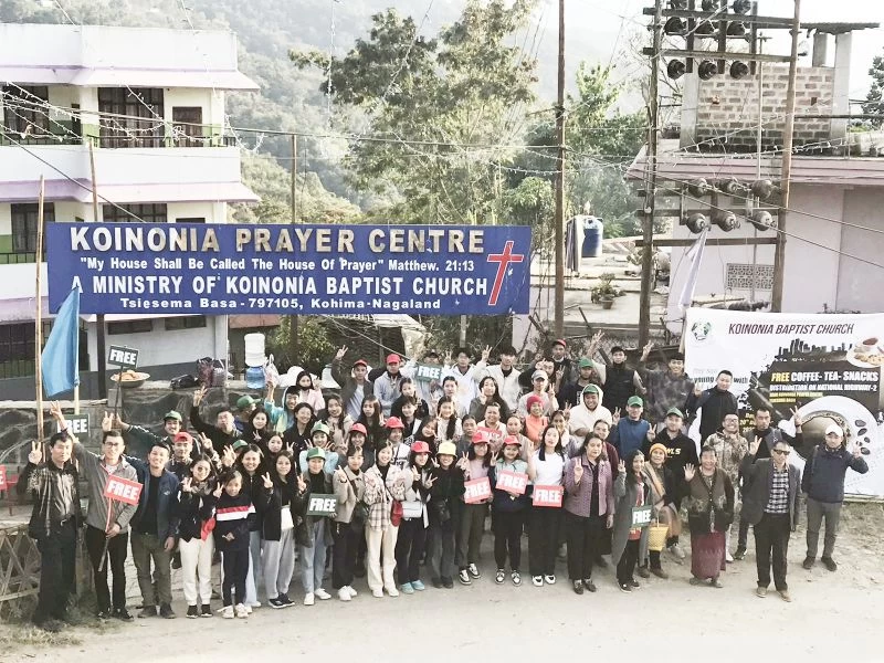 The Koinonia Baptist Church (KBC) on today offered free coffee, tea, and snacks to travelers near Koinonia Prayer Centre (KPC), Tsiesema Army Camp along NH-2.