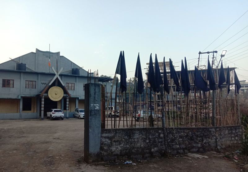 Black flags hoisted outside the KU office as a sign of solidarity to the victims of the Oting killings. (Photo Courtesy: Konyak CSOs Media Cell)