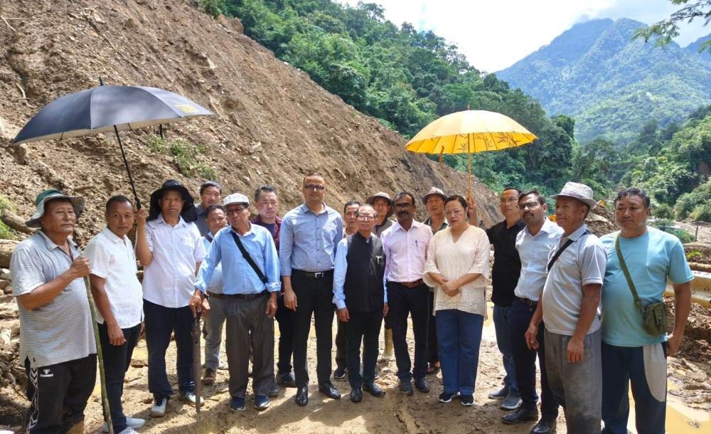 KOHIMA, SEPTEMBER 7 (MExN): Minister for Women Resource Development & Horticulture, Salhoutuonuo Kruse today visited the landslide site along the NEC Road at Dzüna Jotsoma.