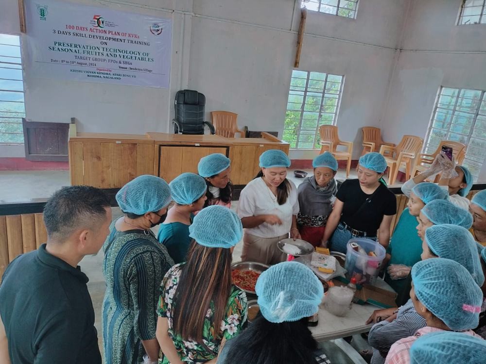 KOHIMA, AUGUST 11 (MExN): In a bid to promote agri-entrepreneurship in Tseminyu District, the Krishi Vigyan Kendra (KVK) Kohima organized a three-day Skill Development Training programme on “Preservation Technology of Seasonal Fruits & Vegetables.”