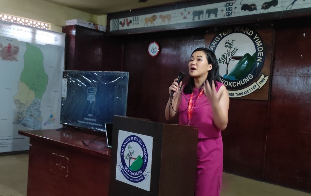 Ashoka University’s Territory Manager for the Northeast, Imnajungla Jamir addresses students in Mokokchung.