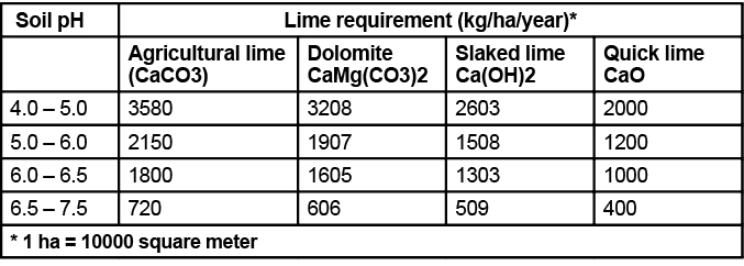 Dosages of lime are calculated based on the neutralizing value of liming material. Agricultural lime or dolomite is more preferred material as these releases bicarbonate ions slowly and for longer period of time to maintain alkalinity at desired levels.