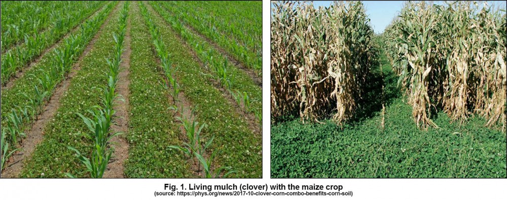 Living mulch on the other hand, are type of low-growing ground cover crop that blankets soil like mulch covering the ground throughout the growing season of the main crop (Fig. 1). It can be incorporated with the main crop by inter-seeding or over-seeding, co-seeding or otherwise companion planting.