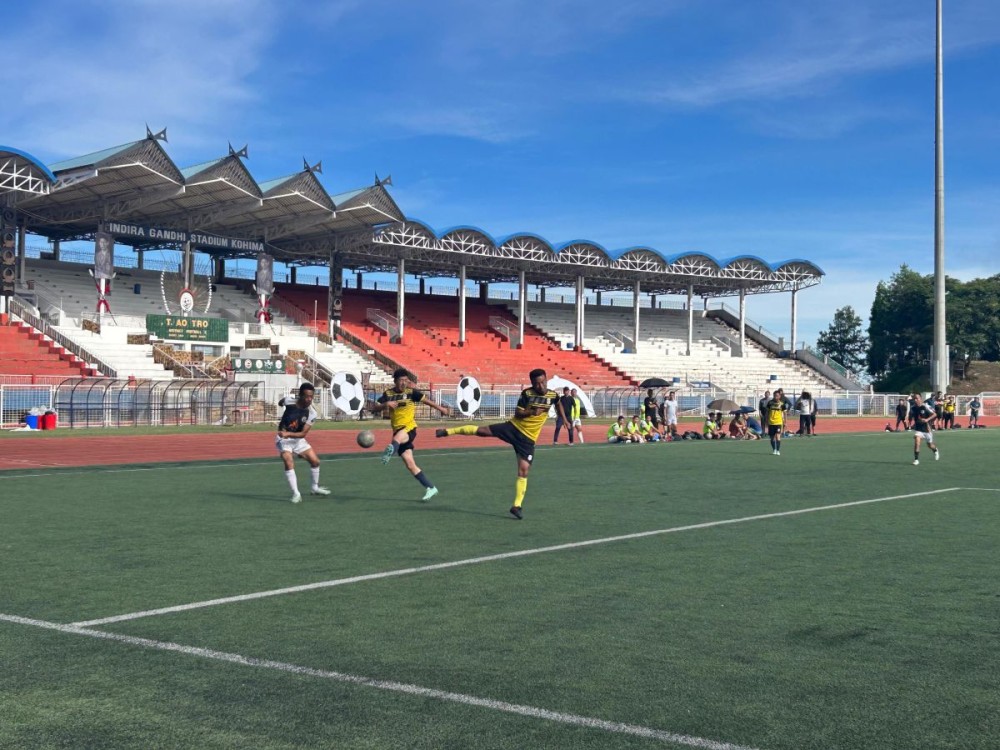 Eagle FC today downed Morung United 2-1 in the first semi finals to enter the finals of the ongoing Lobenkokba Memorial Morning Champions Cup 2025 at Indira Gandhi Stadium, Kohima. Alex and Zato netted a goal for Eagle FC in the 67th and 79th minutes respectively. C. Imchen fetched a lone goal for Morung United in the 7th minute.