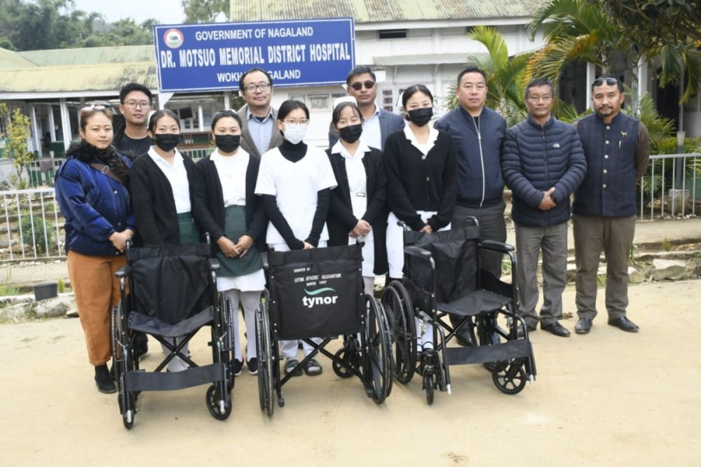 Wokha, December 17 (MExN): The Lotha Officers' Association (LOA) Wokha Unit presents three wheelchairs to Dr Motsuo Memorial District Hospital on December 17, in support of patient care and healthcare workers.