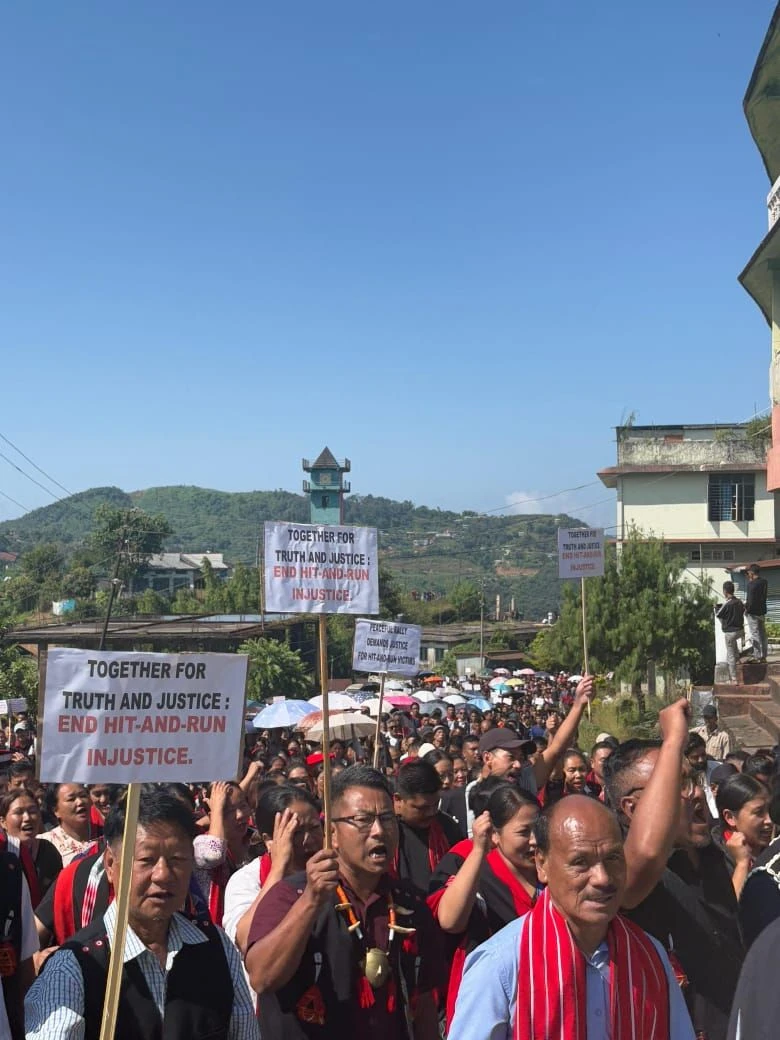 Reeling from the tragic October 25 hit-and-run incident, the people of Longleng took to the streets demanding justice for the two victims. The public demonstration, on October 27, culminated with the Phom Peoples' Council, PhomlaHoichem, and Phom Students' Conference, submitting a joint representation to the Nagaland state government demanding the swift arrest and prosecution of the culprits responsible. It was submitted to the Deputy Commissioner, Longleng.