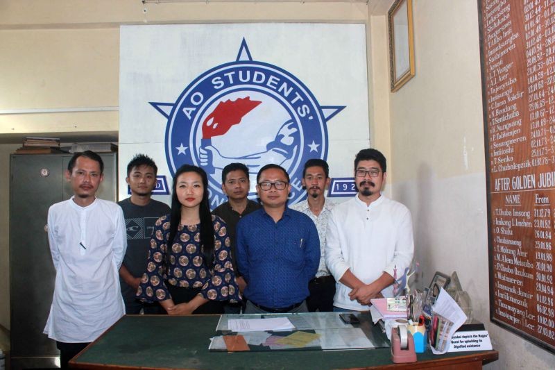 The Ao Students’ Conference (AKM) officials pose for the lens after addressing the press conference its office in Mokokchung on August 9.