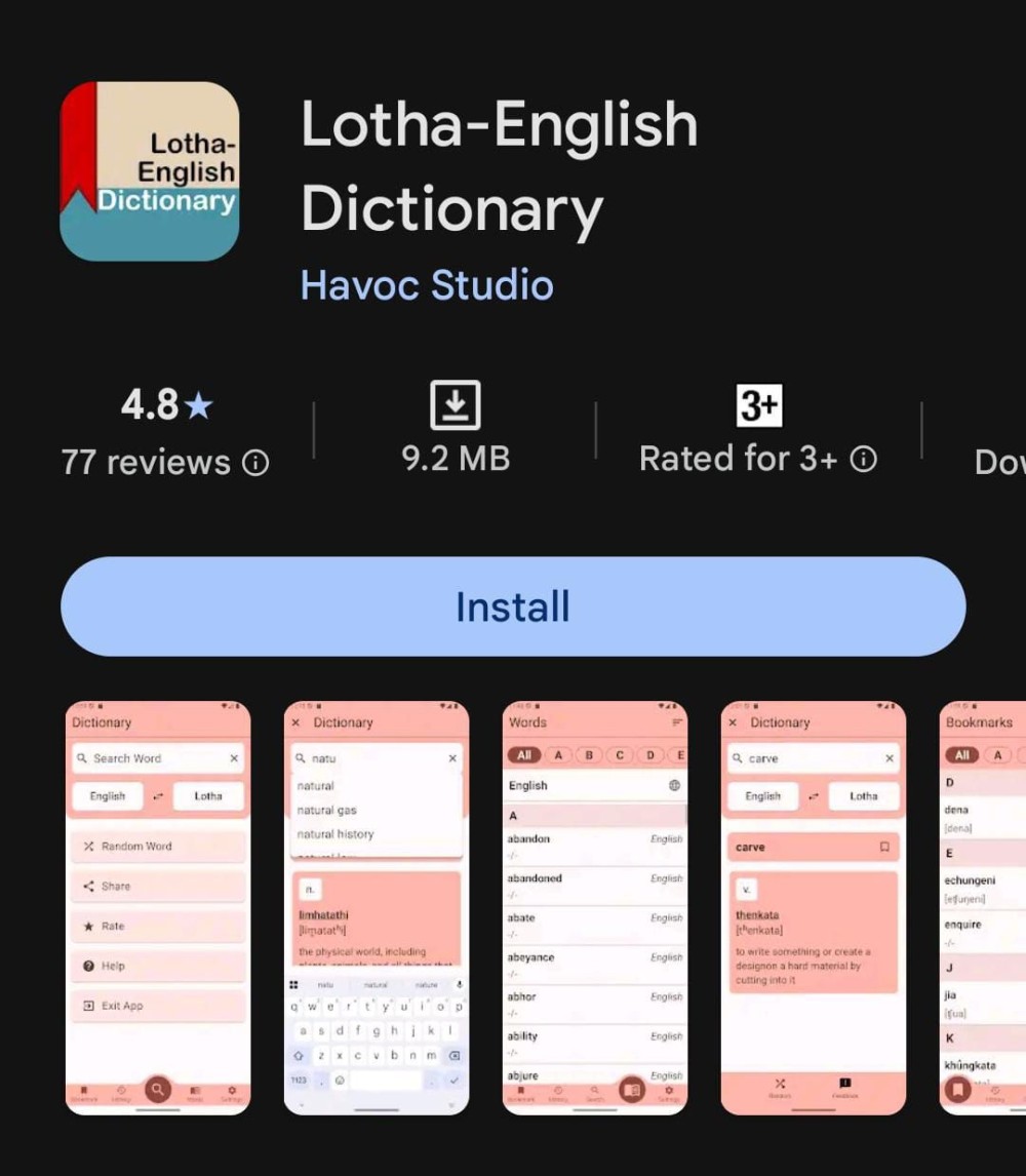 This bilingual dictionary App was developed in response to a request by many Lothas for a dictionary that would help them find the Lotha equivalent of English words in their daily communication. Users can search words from Lotha to English, and from English to Lotha, stated a press release.