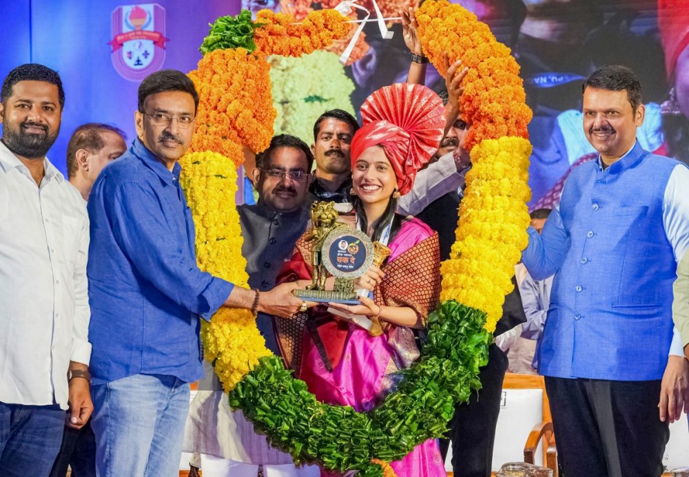 New Delhi, August 2 (IANS) Maharashtra Chief Minister Devendra Fadnavis felicitated Divya Deshmukh, the first Indian woman to win the FIDE Women’s World Cup, with a cash reward of Rs 3 crore at 'Nagari Sanman Sohala' ceremony in Nagpur on Saturday.