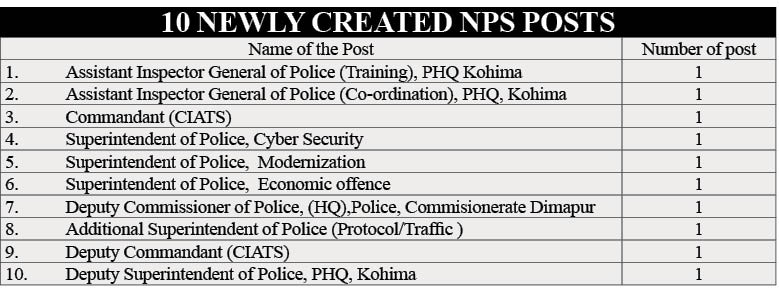 Presently, the ten posts are not part of the organizational structure of the state police as per the Nagaland Police website.