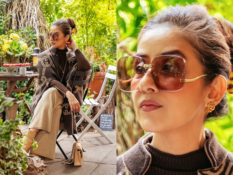 Manisha took to Instagram, where she shared a slew of images sitting between a splash of green. The 54-year-old actress is seen sitting on a chair dressed in shades of browns and nudes as she strikes a pose for the camera.