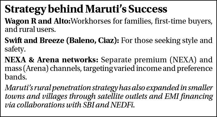 Over the years, Maruti has done something few others have, listened. Whether it is offering EMI plans through SBI, opening up smaller rural outlets, or training local mechanics through Maruti Skill Development Programs, they have stayed relevant.