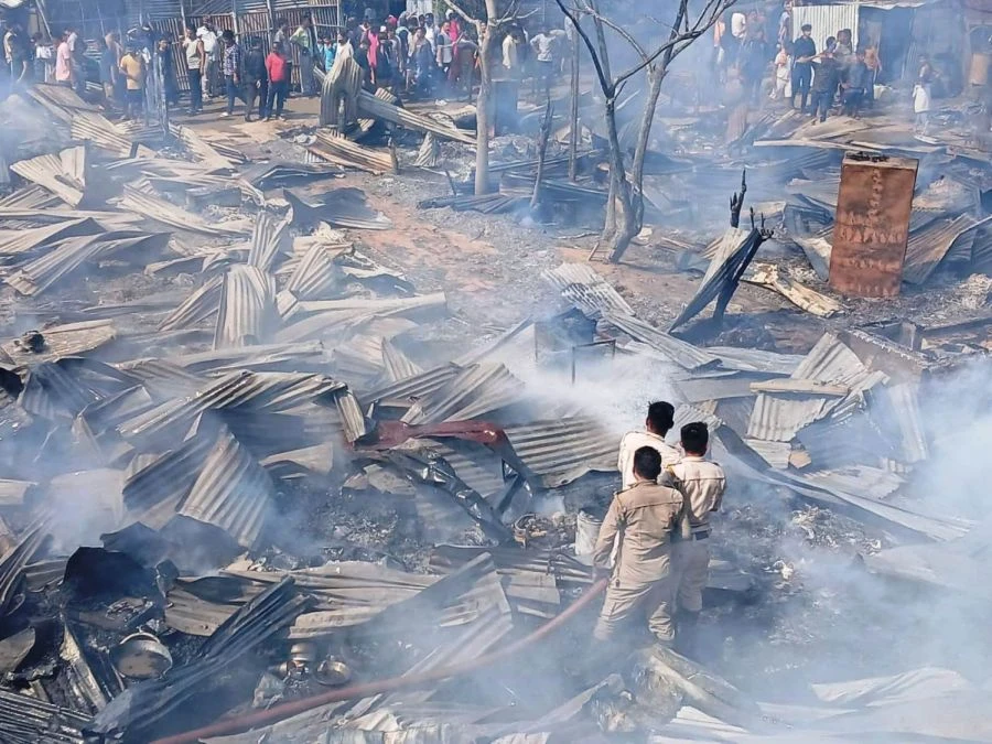 A devastating fire broke out in Naga Gaon Colony, Signal Basti; Dimapur on Wednesday, completely destroying over 40 households. The incident occurred around 11:40 am, with eyewitnesses reporting that several cooking gas cylinders exploded, intensifying the blaze and causing it to spread rapidly.