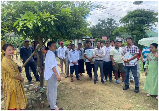 Following this exposure, the farmers were guided through KVK Dimapur farm by Imliakum Pongen. The tour showcased advanced agricultural methods including multi-storied cropping system and the unique way of terrace cultivation of ridge gourd and long yard beans.