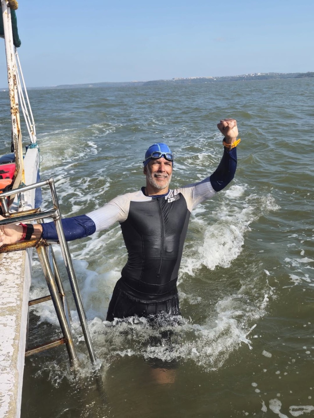 Mumbai, April 8 (IANS) Actor and fitness enthusiast Milind Soman loves to push his limits. Marking a new milestone, he recently completed a 20-kilometer swim during his visit to Goa.
