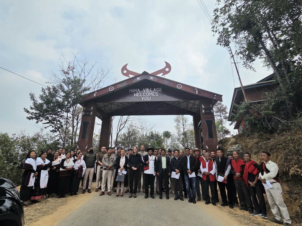 Project officials along with members of Mima village during the inauguration of the Mima village gate on February 23.