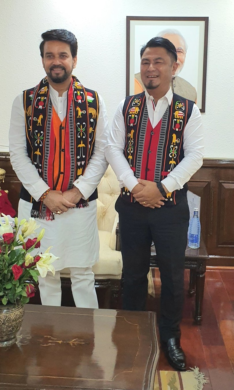 Kohima, August 25 (MExN): Nagaland’s Youth Resources & Sports Advisor Er Zale Neikha today called on the newly appointed Union Minister for Sports & Youth Affairs and Information & Broadcasting, Anurag Thakur at New Delhi.