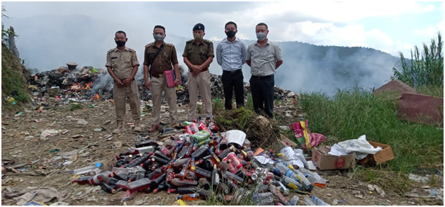 Mokokchung, October 13 (MExN): The Mokokchung Excise destroyed 538 bottles of assorted Indian-made foreign liquor (IMFL) and 48 bottles/cans beer at the Municipal Dumping Site on October 13.