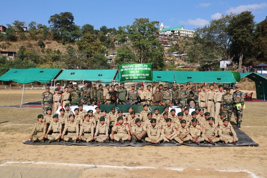 Mokokchung, January 10 (MExN): NCC cadets attending the combined annual training camp witnessed a weapons display at Fazl Ali College Grounds, Mokokchung on January 10.