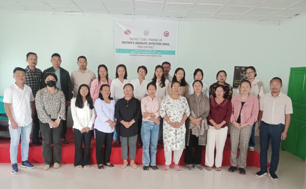Phek, September 25 (MExN): Phek District has conducted district level training on Mother’s Absolute Affection (MAA) at CMO conference hall, Phek on September 24 and 25. The training was attended by GNM, ANM, and CHO with Dr Rukuwe Thele Pediatrician MO PHC Chizami as the resource person.