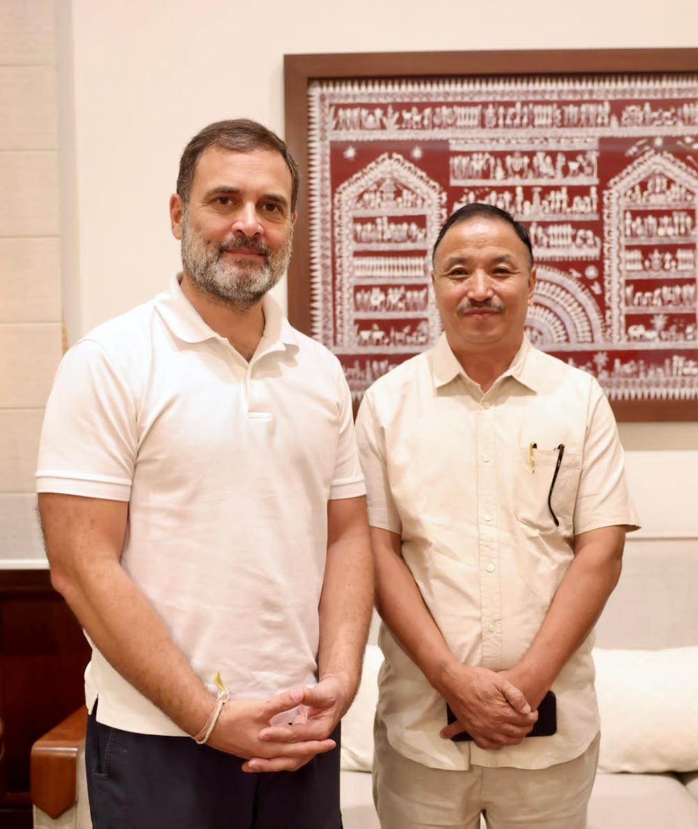 New Delhi, August 9 (MExN): Nagaland's Member of Parliament, S Supongmeren Jamir met with Rahul Gandhi, the Leader of the Opposition in the Lok Sabha, at his office chambers in Parliament. During the meeting, Jamir briefed Gandhi on the issues and provided an update on his recent attempts to address them in the Lok Sabha.