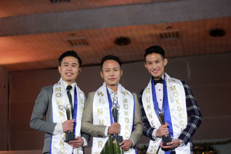 Entertainment 21st November 2021 Talikaba Longkumer after winning the first ever Mr Mokokchung 2021 with Tinuwati and Moanukshi Lemtur, the first and second runner-up respectively at Town Hall, Mokokchung on November 20.