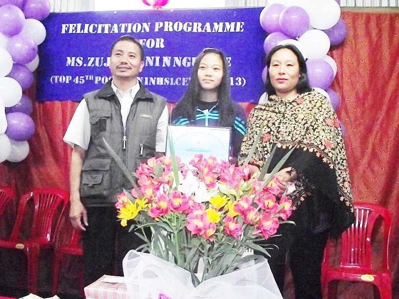 Zujanbeni N Ngullie daughter of Nzanbemo Ngullie, a teacher at Govt. Higher Secondary School Wokha secured the 45th position among the top 50 at the recent 2013 HSLC examination. She scored distinction marks in all her papers for which she was loaded with various presentations from all her subject teachers, school managing board, Alumni Association, her former teachers etc. Zujanbeni who determines to study medicine in the future gave credit to God, her teachers, both past and present, and her parents for her success. “What I’m today is not because of who I am, but because of what the Lord Jesus has done for me." She also encouraged her juniors to be hard working and sincere.