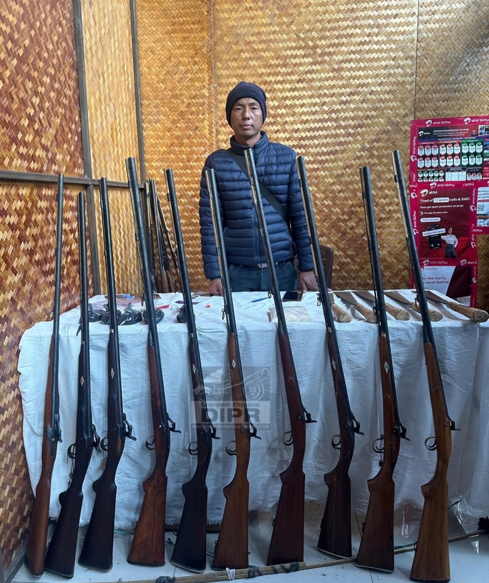 Poangba Konyak, a skilled artisan and entrepreneur hailing from the village of Changlangshu in Mon district, Nagaland, is showcasing his meticulously handcrafted muzzle-loading guns at the ongoing 25th Hornbill Festival in Naga Heritage Village, Kisama. Visitors can find his impressive creations displayed at stall No. 77 within the Handloom & Handicraft Pavilion. Poangba has previously demonstrated his exceptional gunsmith talents at the Hornbill Festival last year as well. His intricate muzzle-loading guns, each a testament to his dedication and craftsmanship, are available for purchase at prices starting from 29,500. Those captivated by the artistry and heritage embodied in these traditional firearms are invited to visit Poangba's stall and witness firsthand the skill and passion he pours into his craft. (DIPR Photo)