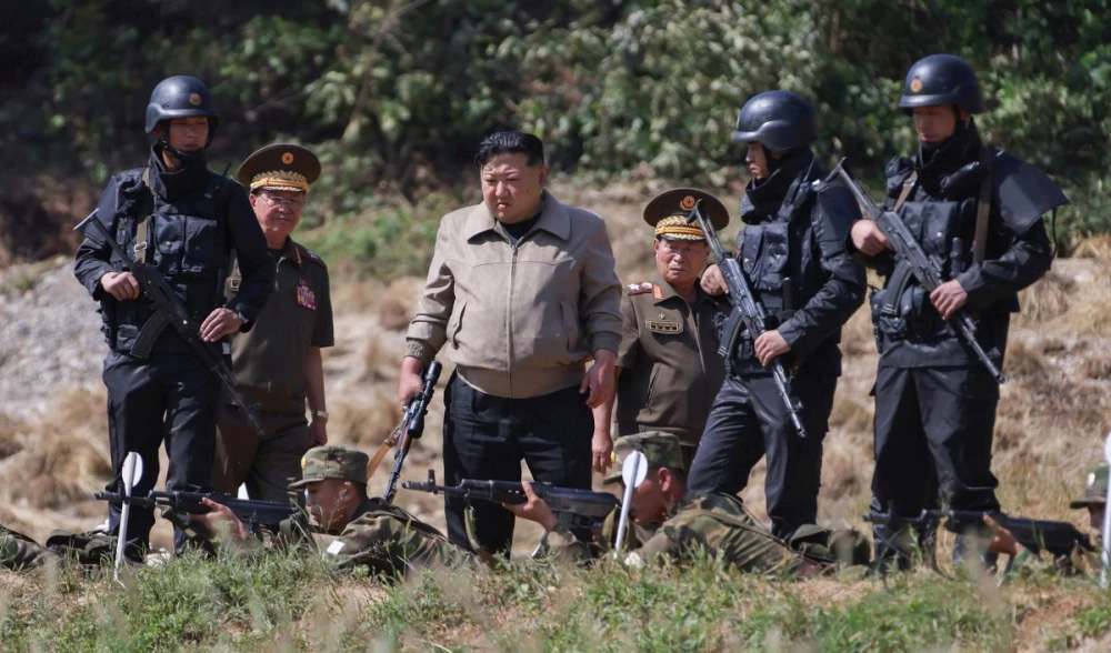 North Korean leader Kim Jong-un (C) inspects the training base of the army's special operations forces on Sept. 11, 2024.(IANS/Yonhap)