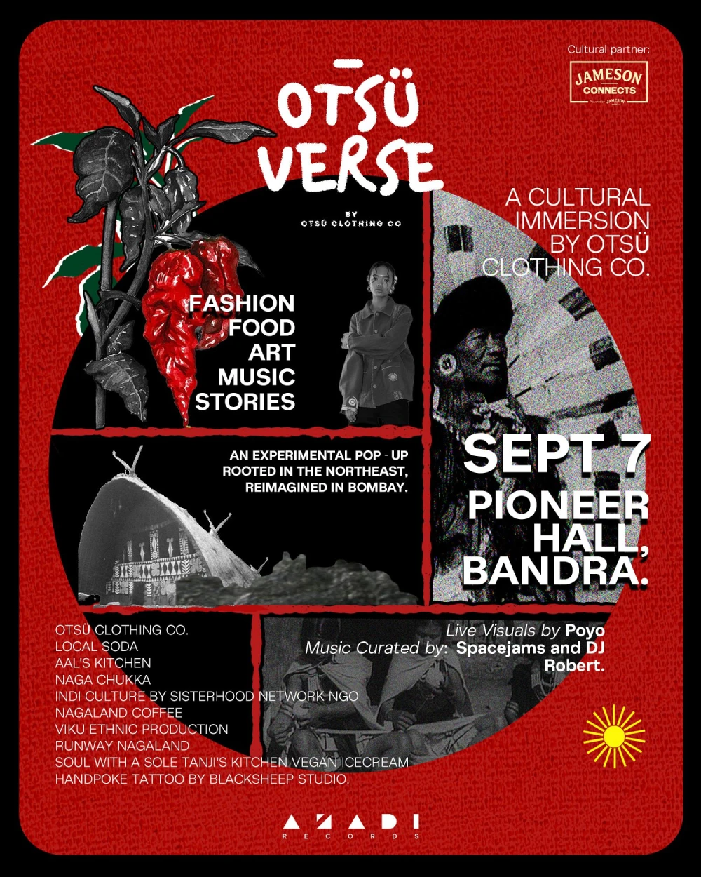 The pop-up, scheduled for Pioneer Hall in Bandra from 3:00 p.m. to midnight, brings together handwoven textiles, curated food experiences, visual art and live DJ sets. Organizers describe it as a bridge between tradition and contemporary culture. “From handwoven textiles and ready-to-wear collections that honour traditional craftsmanship, to flavours that tell stories of our homeland, to DJs and artists creating a new soundscape — Otsüverse is a bridge between heritage and now,” Jamir said.