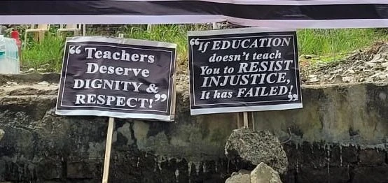 Placards used during CTAN/NNQF and RMSA teachers' protests in April and September respectively. (Morung File Photo)