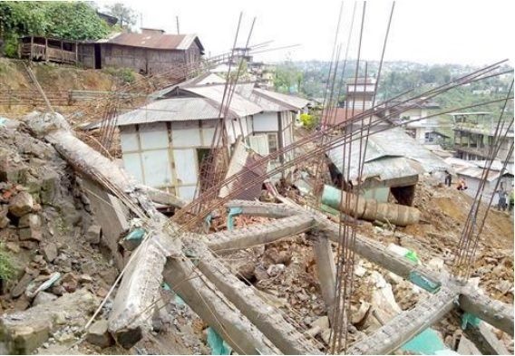 Some of the houses damaged by the landslide at lower Chandmari area, Kohima town.