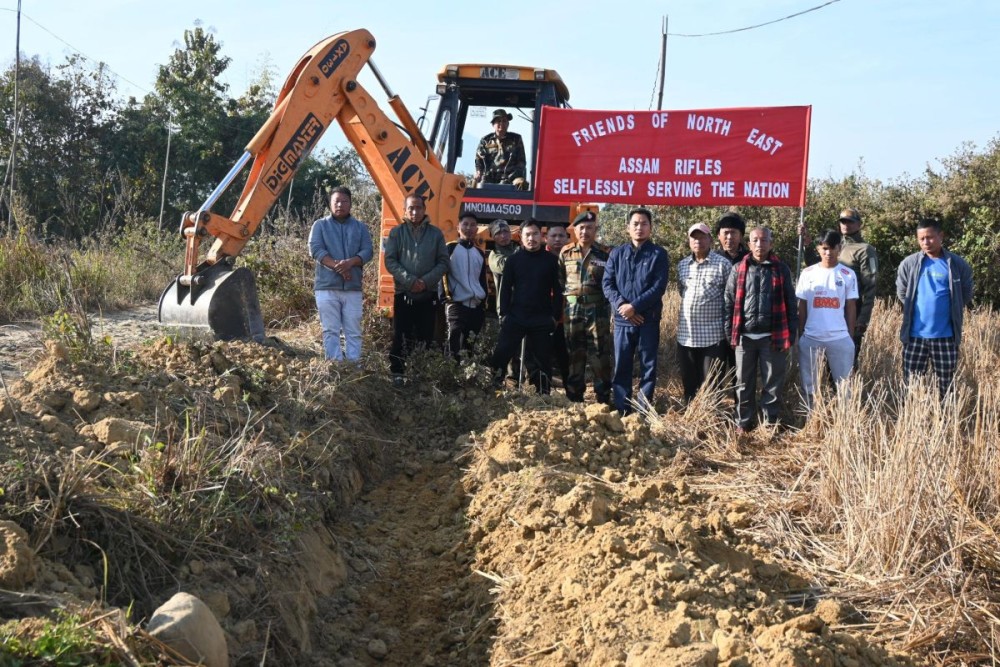 In New Jalukie village under Peren district, Assam Rifles facilitated the deployment of an Earth Moving Plant (EMP) to improve roadside drainage infrastructure.