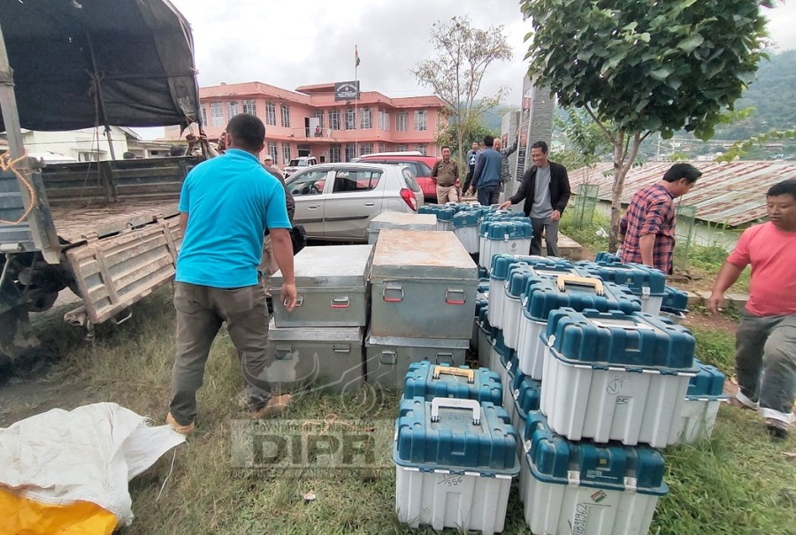 In the presence of Deputy Commissioner, Tseminyu, Dr Zasrkuolie Chusi IAS, District Administration staff, and SDPO Tseminyu, the details of EVMs/VVpATs along with consumables were shifted from Kohima to Tseminyu on October 11. The details include ECILM3 CU 74 (list of unique IDs enclose); ECILM3 BU 74 (list of unique IDs enclose); ECILM3 VVPATs 74; Power pack for VVPATs 30; Power pack for Cu 30; Pink paper seal 220; Dummy Ballot 20; Thermal paper Roll 30. (DIPR Photo)