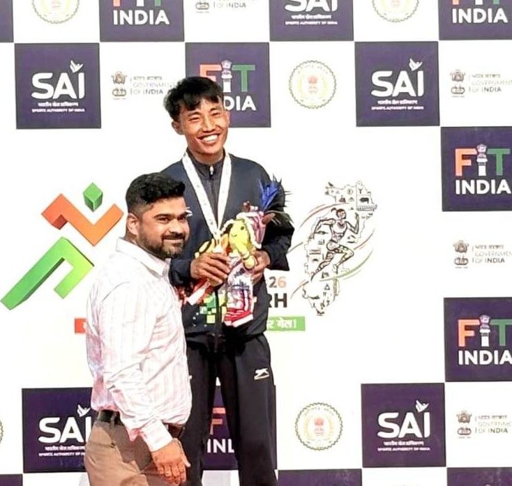 Wede T Mero today clinched a Gold medal for Team Nagaland in Men’s 10,000 meters race at the 1st Khelo India Tribal Games 2026 in Chhattisgarh.