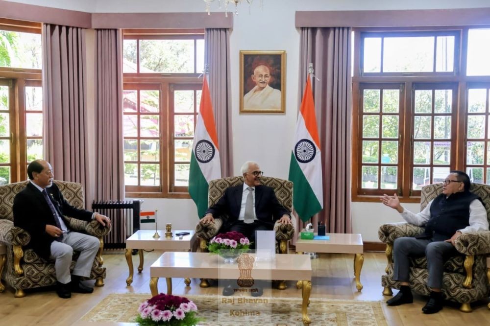 Kohima, November 9 (MExN): Chief Minister Dr Neiphiu Rio, along with Deputy Chief Minister TR Zeliang and colleagues, called on the Governor of Nagaland, Ajay Kumar Bhalla, at Raj Bhavan, Kohima, on Sunday.