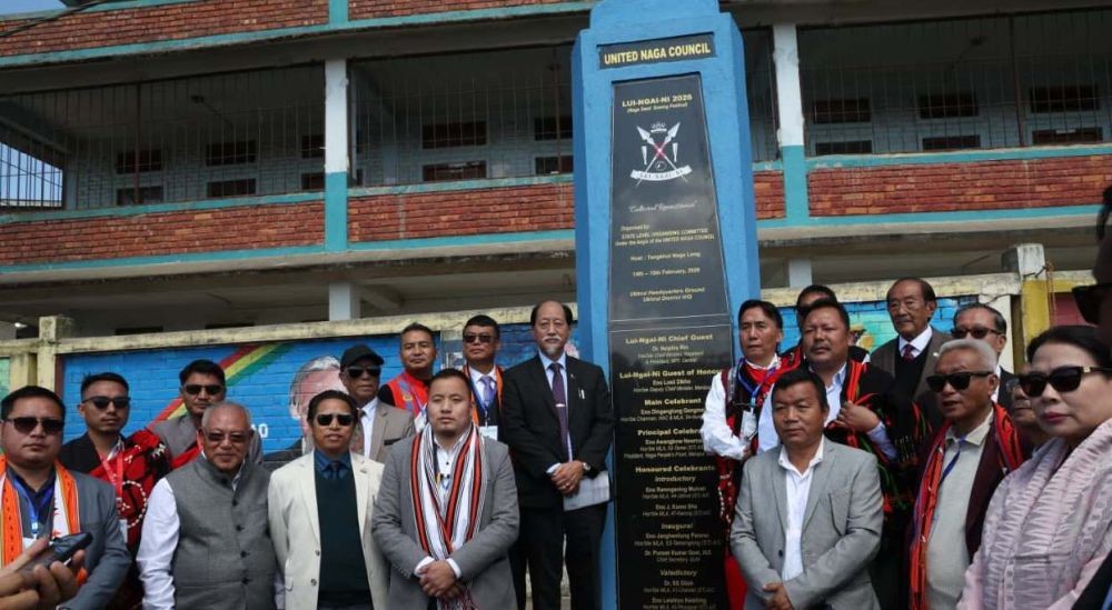 Nagaland’s Chief Minister Dr. Neiphiu Rio and others after unveiling a monolith for Lui Ngai Ni 2026 at Ukhrul on February 15