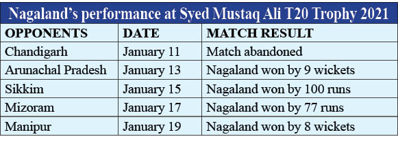 Dimapur, January 19 (MExN): Nagaland cricket team today ended the Syed Mustaq Ali T20 Trophy campaign on a high note by registering their 4th consecutive win.